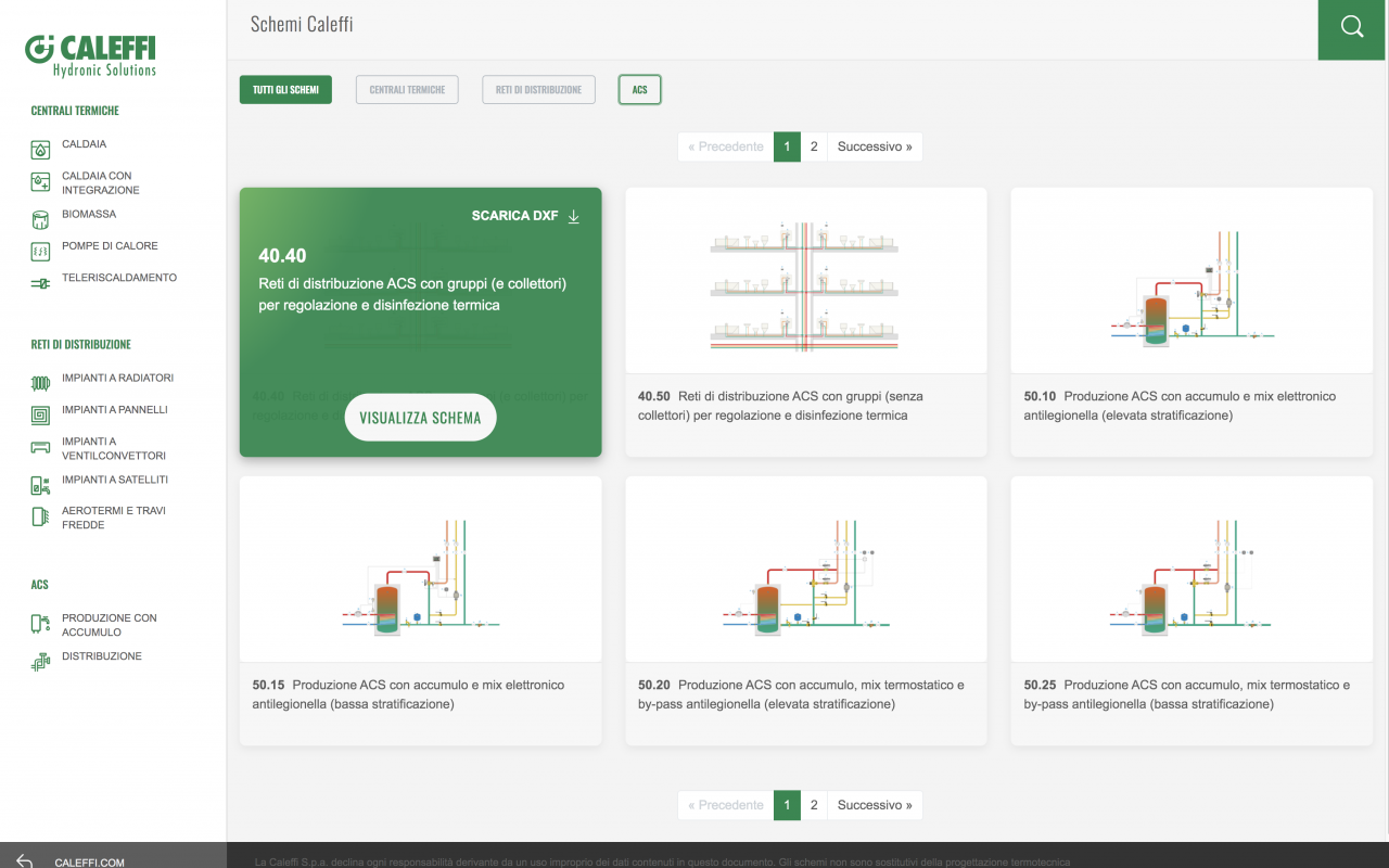 “卡莱菲水力图示”(Schemi Caleffi)是一个基于网络的在线应用程序,它提供了我们的系统设计解决方案“种类“,且可以为每一个独立的方案选定目录中最佳的产品。