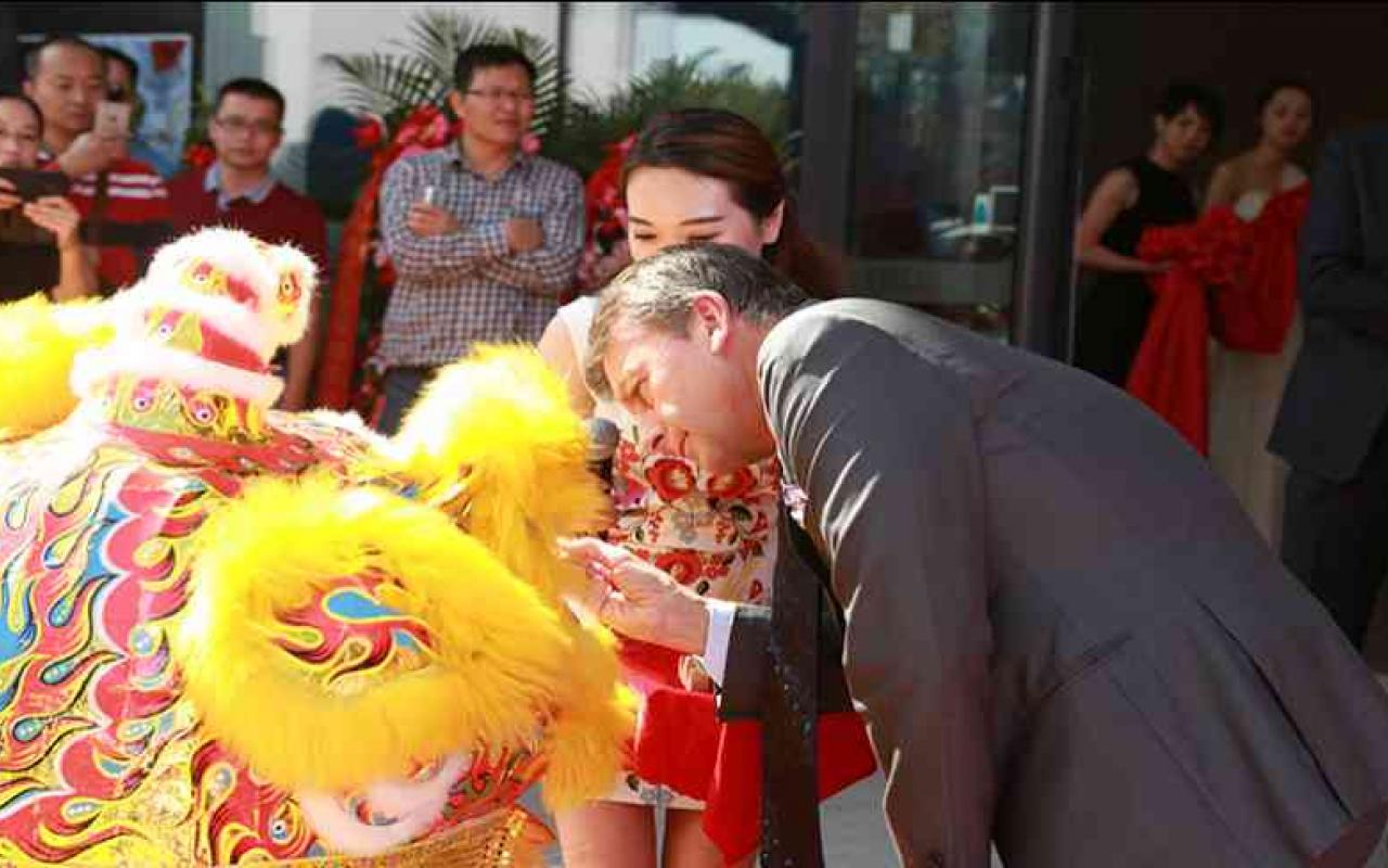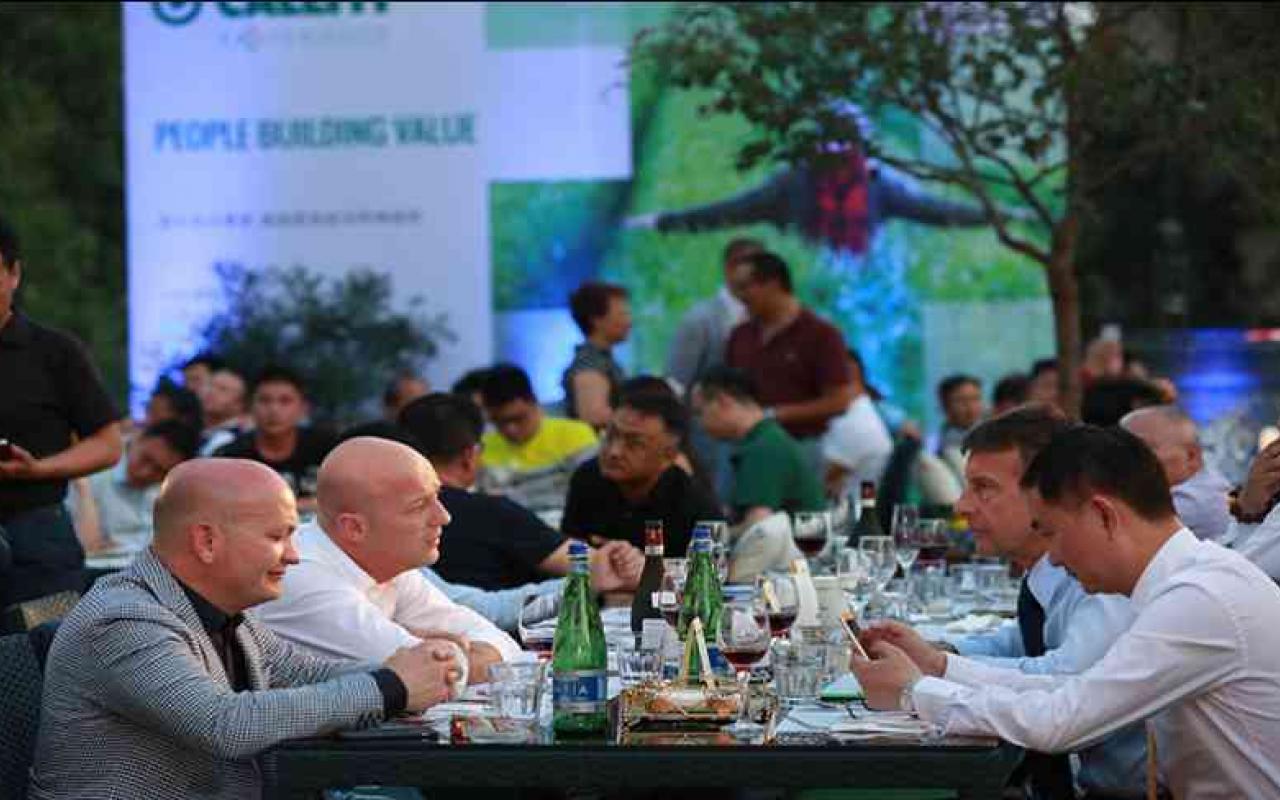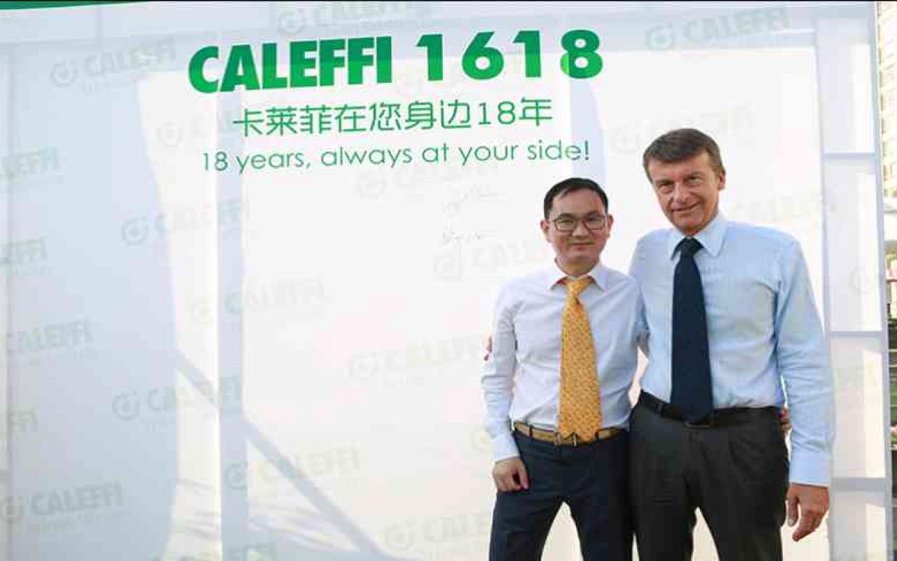 随后卡莱菲集团总裁CaleffiMarco先生为蠢蠢欲动的舞师点睛,带有浓厚中国节日文化的舞狮将活动推向高潮。在吉祥、兴旺、喜庆的氛围下,”意大利卡莱菲体验馆”正式拉开帷幕。 紧接着在展厅内,Caleffi Marco先生与舒雪松先生共同开启香槟,将美好的祝愿随着香气四溢的香槟倾倒于酒杯中,各位嘉宾手举酒杯,表达了对卡莱菲展厅最美好诚挚的祝愿。 晚上18:30,主题为“卡莱菲1618”的晚宴正式拉开帷幕,卡莱菲集团总裁CaleffiMarco先生以及卡莱菲中国办事处首席代表舒雪松先生先后致欢迎词。‘1618’这一主题表明,2016年是卡莱菲正式进入中国市场的18年,18年来卡莱菲见证了行业的风云变迁,始终坚持100%‘意大利制造’的理念,不以降低质量的代价来迎合某些市场的需求。
